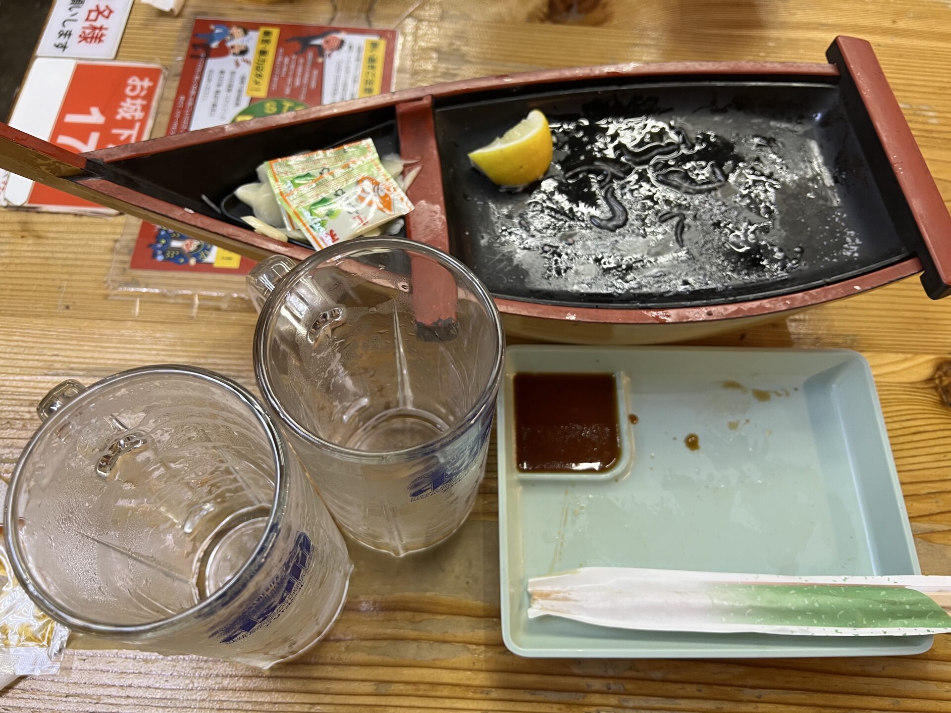 ちなみに5切れはお皿ですが6切れ以上は舟盛りになりますよ(今回は6切れを注文)